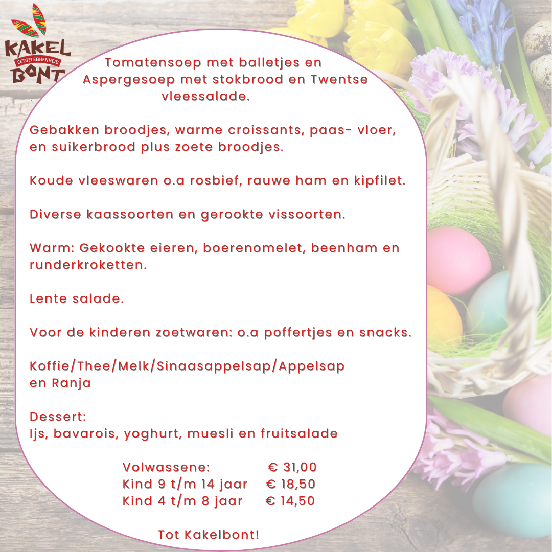 5 April 2026, 1e Paasdag. Paasbrunch bij Kakelbont!